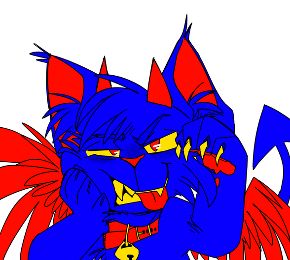 just a funky little guy! he is a magical devil cat who loves to cause mischief. his design is very flexible in terms of his body type and size, so i draw him lots of different ways! he will bully you but in that sibling way where if anyone else is mean to you he'll beat the shit out of them. very friend shaped.